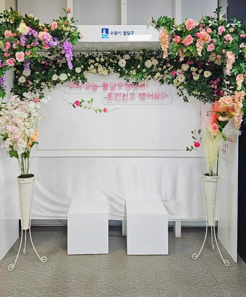 팔달구청에 신혼부부를 위한 포토존을 새롭게 재단장 했다.