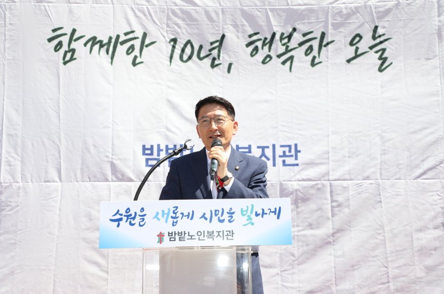 수원특례시의회가 8일(수) 어버이날을 맞이하여 수원시 장안구 밤밭노인복지관에서 열린 밤밭노인복지관 개관 10주년 기념행사에 참석해 축하의 자리를 가졌다.