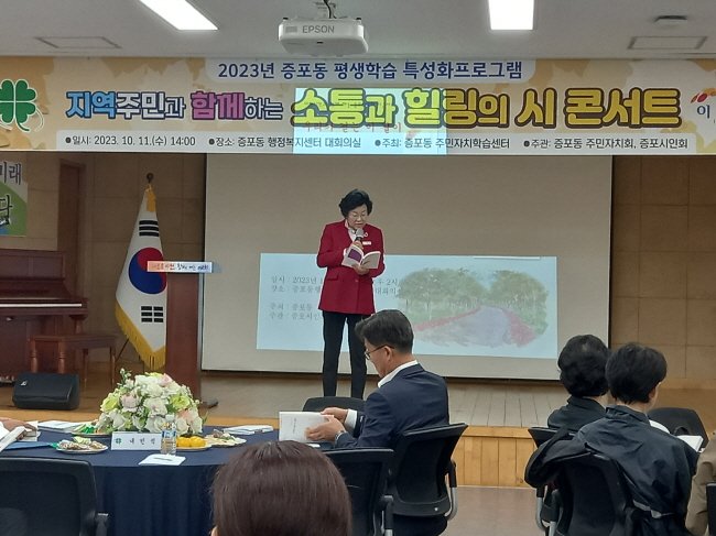 이천시 증포동은 특성화 평생학습 프로그램 ‘지역주민과 함께하는 소통과 힐링의 시 콘서트”을 성황리에 개최했다.