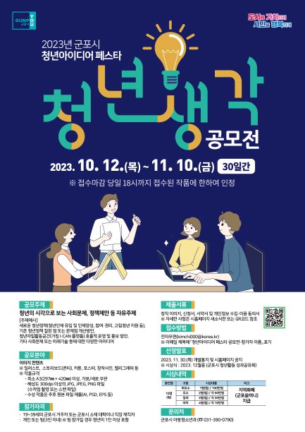 군포시는 청년의 시각으로 보는 정책제안, 사회문제 등 청년의 자유로운 생각과 고민을 이미지 콘텐츠로 담아내는 ″청년생각〞공모전을 개최한다.