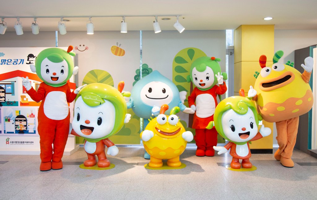 예방교육을 담당하는 캐릭터 슈슈, 토미토미, 아미아미, 토토 인형극단 단원들이 포즈를 취하고 있다. 경기남부뉴스