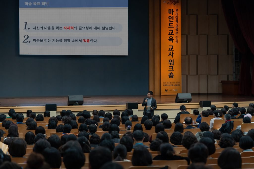 이어진 마인드교육 시범 강의에서는 이상훈 강사가 마인드교육 교재 중 '마음의 조절 기능 사용하기' 단원을 소개하며, 수업에서 활용 가능한 구체적인 방법과 학생 참여 유도 기법을 시연해 참석자들에게 큰 호응을 얻었다.