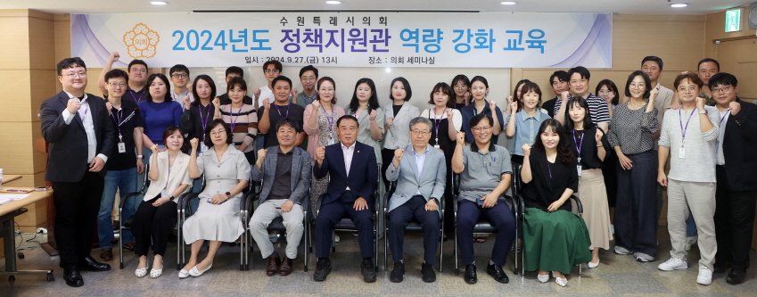 수원특례시의회는 27일(금)의회 세미나실에서‘수원특례시의회정책지원관 역량강화교육’을 실시했다.