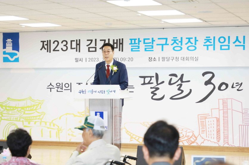 지난 7월 1일 제23대 수원시 팔달구청장에 김기배 전 수원시 문화청년체육국장이 취임했다.