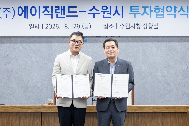 8월 29일 시청 상황실에서 열린 협약식에는 이재준 수원시장, ㈜에이직랜드 이종민 대표 등이 참석했다.