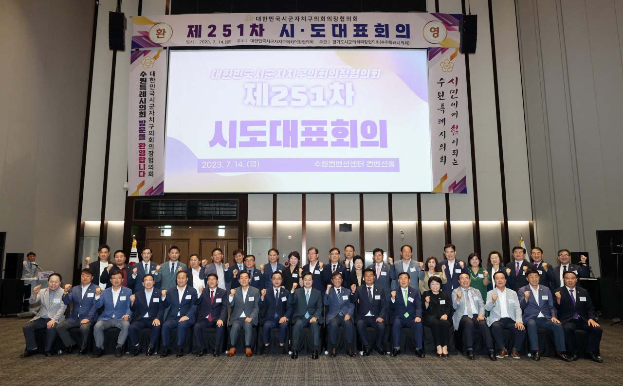 7월 14일(금) 오전 11시 수원컨벤션센터에서 경기도시·군의회의장협의회(회장 김기정 수원특례시의회 의장) 주관으로 대한민국시군자치구의회의장협의희(전국대표회장 최봉환) 제251차 시·도 대표회의를 개최됐다.