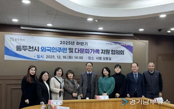 [경기남부뉴스 김혜숙 기자] 동두천시는 16일 시청 상황실에서 이태진 부시장(위원장) 주재로 ‘2025년 하반기 외국인주민 및 다문화가족지원협의회’를 개최하고, 관내 외국인·다문화 관련 유관기관과 함께 2025년 하반기 주요 사업 추진 실적을 공유하며 2026년 신규 사업 추진을 위한 협력 방안을 논의했다.