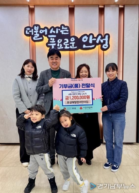국공립공도효성해링턴어린이집은 안성시 공도읍에 소재한 영유아 보육시설로 지역사회 참여와 나눔 실천의 일환으로 다양한 기관에 꾸준히 기부를 이어오고 있다. 어린이집은 이번에도 탄소중립 플리마켓 ‘쓰레기도 다시 쓸 수 있어요!’ 행사를 통해 마련한 수익금 120만 원을 지역사회를 위해 전달하며, 아이들과 함께 나눔의 가치를 실천했다.