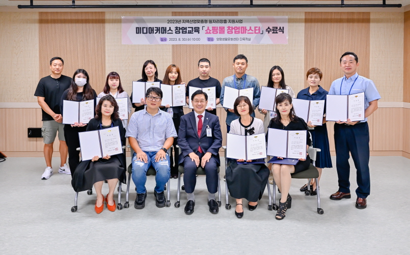 지난 8월 30일 양평군은 경기도 공모사업인 지역산업 맞춤형 일자리창출 지원 사업 미디어커머스「쇼핑몰 창업마스터」교육 수료식을 개최했다.