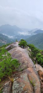 오늘 밧줄 구간을 오르며 정상까지 오르는 구간이 비가 오는 관계로 쉽지는 않았지만 우중 산행의 색다른 재미를 느낄 수 있었다. 정상에서 내려오면서 암릉을 보는데 입이 다물어지지를 않았다. 천태산의 멋진 풍경을 뒤로하고 8시 50에 하산을 마치고 다음 산행지인 금산군 서대산을 향해 이동했다.