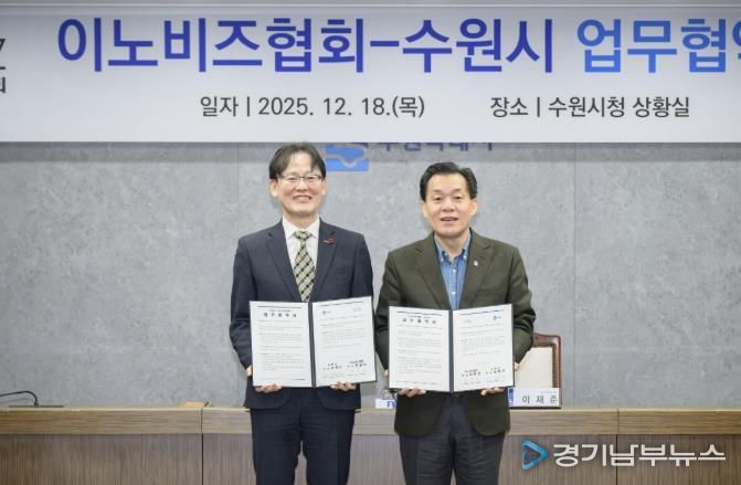 [경기남부뉴스 김정옥 기자] 수원특례시와 이노비즈협회가 업무협약을 체결하고, 수원 경제자유구역에 국내외 투자를 유치하기 위해 협력하기로 했다.