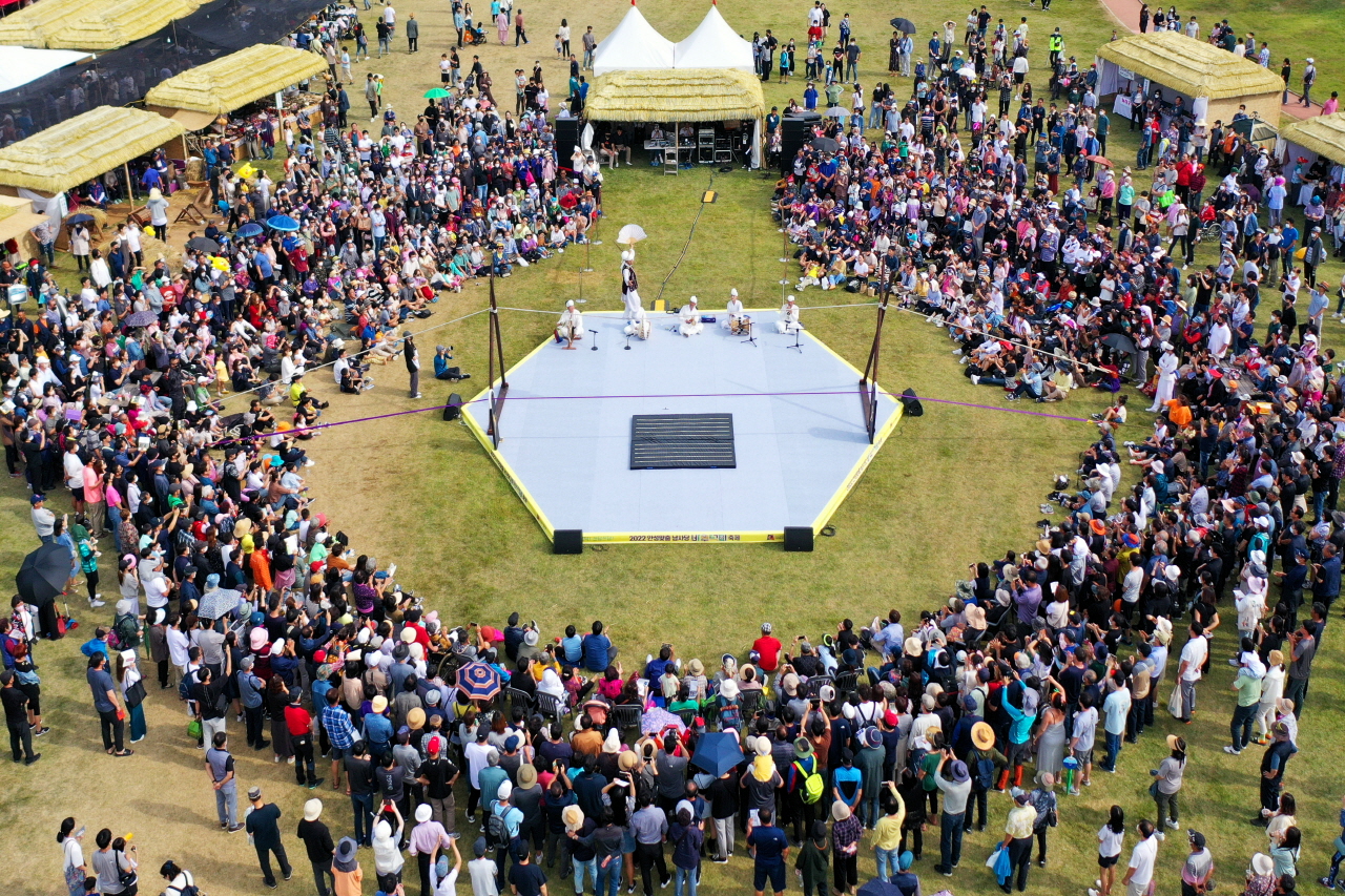 6년 만에 재개된 전야제 행사인 길놀이 퍼레이드를 비롯해 축제의 꽃인 남사당 풍물단 공연과 퓨전공연, 안성 예술인 및 시민단체들이 참여하는 프로그램 등 어느 해보다 알찬 콘텐츠로 구성됐다.