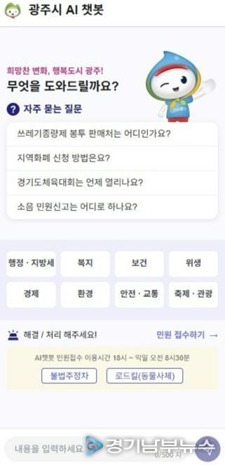 [경기남부뉴스 김혜숙 기자] 광주시는 생성형 인공지능(AI) 기술을 활용한 ‘광주시 AI 행정서비스 구축’ 사업을 완료하고 AI 민원 채팅 로봇과 콜봇을 22일부터 시범 운영한다고 19일 밝혔다.