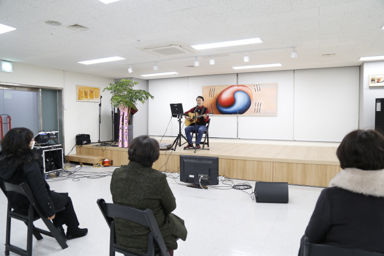서수남 씨는 최근 ‘울 엄마’라는 신곡을 발표했다. 2살에 아버지를 여의고 홀로 아들을 키워내신 어머니에 대한 고마움을 담아낸 곡으로 깊은 울림이 전해진다. 그에게 조심스레 노래한 곡을 신청했다. “오늘 목 상태 좋다”며 전시회장 무대에 설치된 음향장비에 자신의 기타와 장비들을 연결했다. 전시회장을 찾은 관객들은 거리두기로 앉아, 때아닌 음악회에 기뻐하는 모습이었다. 기타로 차려진 무대와 그의 사진은 그 어떤 오케스트라보다 진한 감동을 안겨주었으며 소상공인에게 위로를 보내기에 충분했다.