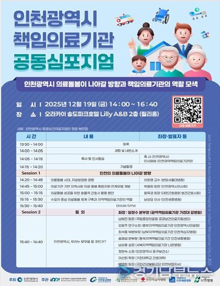 [경기남부뉴스 김혜숙 기자] 인천광역시는 12월 19일 오라카이 송도파크 호텔에서 인천 소재 5개 책임의료기관 및 인천공공보건의료지원단과 함께 '2025년 인천 책임의료기관 공동 심포지엄'을 개최했다고 밝혔다.