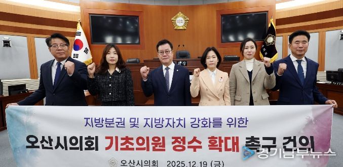 [경기남부뉴스 김혜숙 기자] 오산시의회는 19일 열린 제298회 제2차 정례회 제3차 본회의에서 ‘오산시 기초의원 정수 확대 촉구 건의안’을 채택하며 급격한 인구 증가와 행정수요 변화에 걸맞은 제도 개선을 국회, 행정안전부, 선관위 등 관련 기관에 강력히 요구했다.