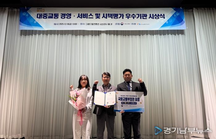 수원시는 ‘2025 대중교통 시책평가’에서 B그룹(인구 30만 이상도시) 우수기관으로 선정됐다. 수원시는 2년마다 진행되는 대중교통 시책평가에서 2013년부터 올해까지 연속으로 우수기관으로 선정됐다. 시상식은 19일 서울 강남구 그랜드힐컨벤션에서 열렸다.