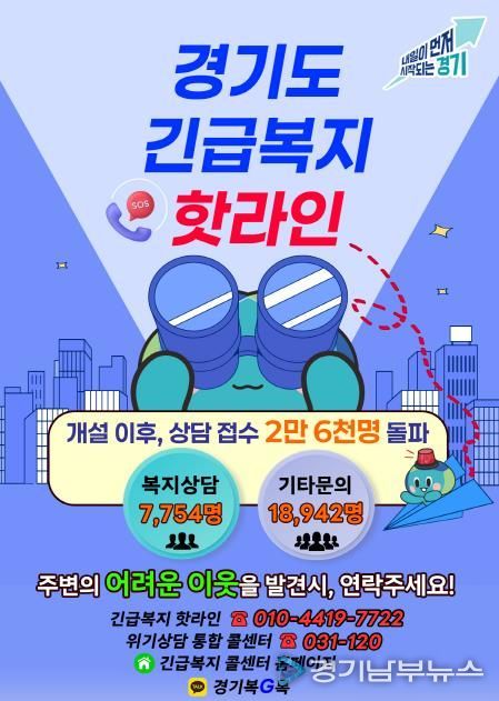 경기도가 2022년 8월부터 위기도민 발굴을 위해 ‘긴급복지 핫라인’을 운영한 결과 3년 3개월 만에 상담 접수 2만 6천 명을 넘어섰다.