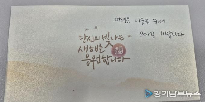 [경기남부뉴스 김혜숙 기자] 양평군 양서면은 연말을 맞아 양서면 주민들이 조용히 이웃돕기 성금을 전달하며 지역사회에 큰 감동을 주고 있다고 밝혔다. 주민들은 “선행은 드러내지 말라”는 뜻처럼 이름을 밝히지 않은 채 자발적으로 모은 기부금을 전달해 도움이 필요한 이웃들에게 따뜻한 온정을 전하고 있다.