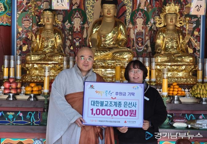 [경기남부뉴스 김혜숙 기자] 이천시 부발읍 산촌리에 위치한 대한불교조계종 은선사는 지난 12월 22일, 동지를 맞아 부발읍행정복지센터(읍장 이은미)에 후원금 100만 원을 기탁했다.