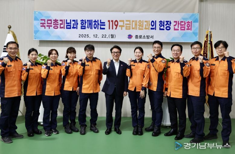 [경기남부뉴스 김혜숙 기자] 김민석 국무총리는 12월 22일 서울 종로소방서를 방문하여 응급환자이송체계 최일선에 있는 119구급대원의 의견을 듣는 자리를 가졌다.