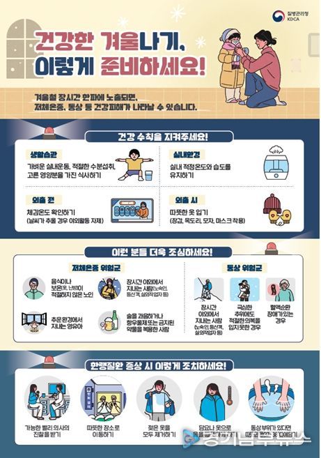 [경기남부뉴스 김혜숙 기자] 서울시는 본격적인 겨울추위가 시작되면서 한랭질환자가 잇따라 발생하고 있다며 시민들에게 각별한 주의를 당부했다. 특히 한파 속 실외 활동과 음주 후 장시간 야외에 머무는 행동은 생명을 위협할 수 있는 만큼, 보온 유지와 건강수칙 준수가 무엇보다 중요하다고 강조했다. 시는 68개 의료기관이 참여하는 응급실 감시체계를 운영하며 한랭질환 예방·관리 대응을 강화하고 있다.