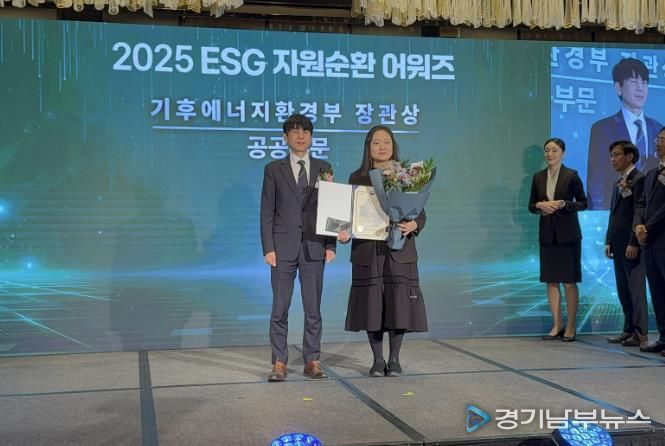 [경기남부뉴스 홍복순 기자] 연천군시설관리공단은 지난 24일 열린 ‘2025 ESG 자원순환 어워즈’에서 공공기관 부문 우수기관으로 선정되어 기후에너지환경부 장관상을 수상했다고 밝혔다.