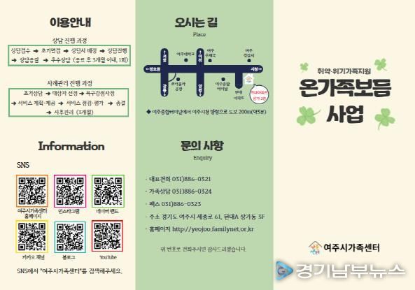 [경기남부뉴스 김혜숙 기자] 여주시가족센터는 가족의 다양성을 존중하고 취약·위기가정의 안정적인 삶을 지원하기 위해 '온가족보듬사업'을 적극적으로 운영했다.
