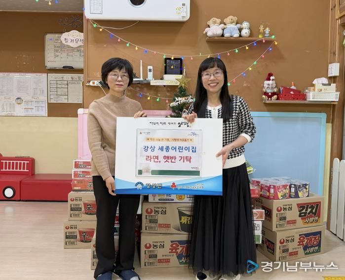 [경기남부뉴스 김혜숙 기자] 양평군 강상면은 지난 24일 강상면 병산리에 위치한 세종어린이집에서 라면과 즉석식품 등 이웃 돕기 후원 물품을 기탁했다고 밝혔다.