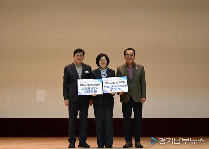 [경기남부뉴스 김혜숙 기자] 안성시시설관리공단은 안성시와 오산시의 상생협력과 지역경제 활성화를 목적으로 안성시설관리공단과 오산도시공사가 중점적으로 추진한'고향사랑기부제 상호기부 전달식'을 개최했다고 밝혔다.