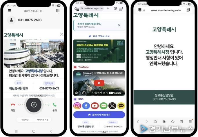 [경기남부뉴스 김혜숙 기자] 고양특례시는 ‘거점형 스마트 조성 사업’의 일환으로 행정전화에 대한 시민 신뢰도를 높이고 민원 응대 효율을 개선하기 위해 ‘스마트 레터링 서비스'를 구축했다고 26일 밝혔다.