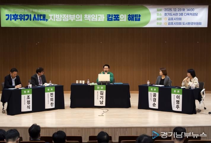 [경기남부뉴스 김혜숙 기자] 김포시의회 도시환경위원회는 12월 23일 장기도서관에서 ‘기후위기 시대, 지방정부의 책임과 김포의 해답’을 주제로 제17회 정책토론회를 열었다.