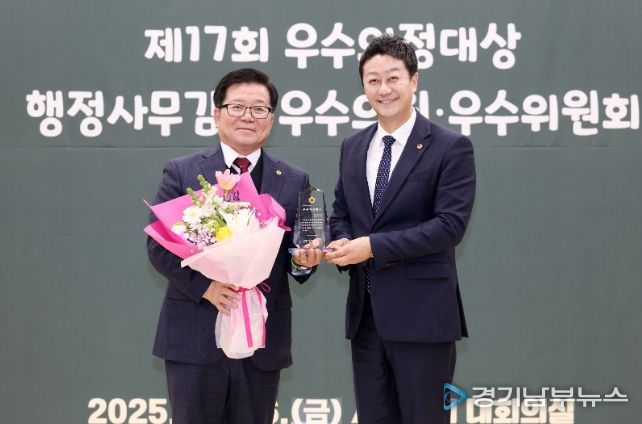 [경기남부뉴스 김혜숙 기자] 경기도의회 건설교통위원회 허원 위원장(국민의힘, 이천2)은 26일 경기도의회 대회의실에서 열린 ‘2025년 경기도의회 시상식’에서 대한민국시도의회의장협의회가 수여하는 ‘제17회 우수의정대상’을 수상했다.