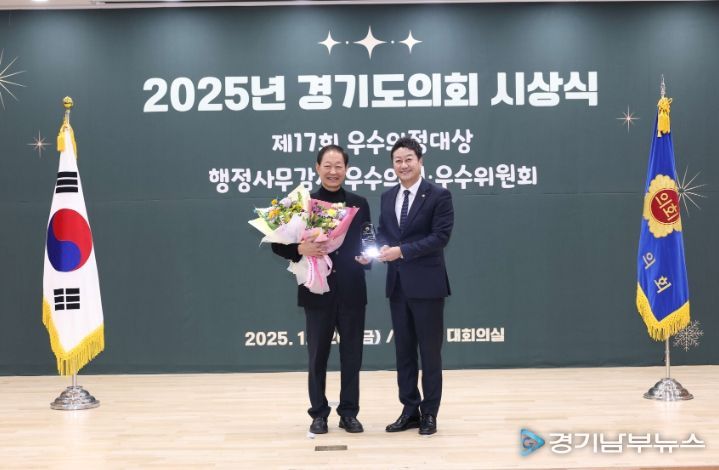 [경기남부뉴스 김혜숙 기자] 경기도의회 문화체육관광위원회 윤재영 의원은 12월 26일 경기도의회 대회의실에서 열린 대한민국시도의회의장협의회 제17회 ‘우수의정대상’ 시상식에서 우수의정대상을 수상했다.