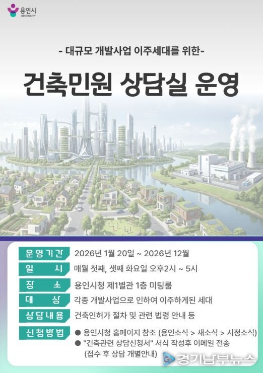 시 관계자는 “개발사업으로 이주하는 시민들이 건축 절차에 대한 정보 부족으로 어려움을 겪는 경우가 많다”며 “건축민원 상담실 운영을 통해 시민 불편을 줄이고, 보다 체계적인 행정 지원이 이뤄질 수 있도록 지원할 것”이라고 말했다.