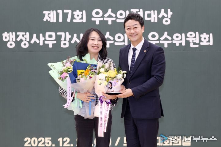 [경기남부뉴스 김혜숙 기자] 경기도의회 경제노동위원회 이병숙 의원(더불어민주당, 수원12)이 「2025년 경기도의회 행정사무감사 우수의원」에 선정되어 12월 26일 도의회 대회의실에서 열린 시상식에 참석했다. 이 의원은 재정·노동·경제·사회적 약자 보호 등 경제노동위원회 소관 현안을 중심으로 집행 실태를 꼼꼼히 점검하고, 실질적인 제도 개선을 요구한 점을 높게 평가받았다.