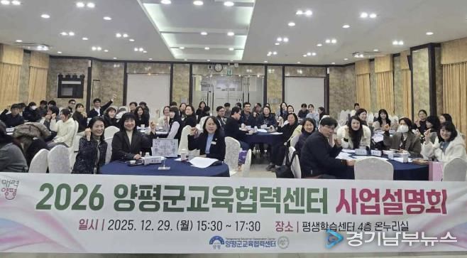 [경기남부뉴스 김혜숙 기자] 양평군은 29일 오후 3시 30분 평생학습센터 4층 온누리실에서 ‘2026년 양평군교육협력센터 사업설명회’를 개최했다.