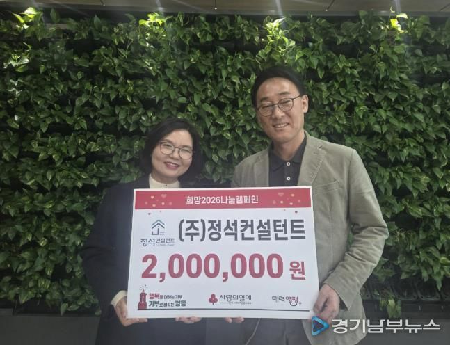 이은주 복지정책과장은 “올해에도 변함없는 나눔을 실천해 주신 ㈜정석컨설턴트에 진심으로 감사드린다”며 “기탁해 주신 성금이 취약계층의 생활 안정과 따뜻한 겨울나기에 기여할 수 있도록 책임 있게 활용하겠다”고 전했다.