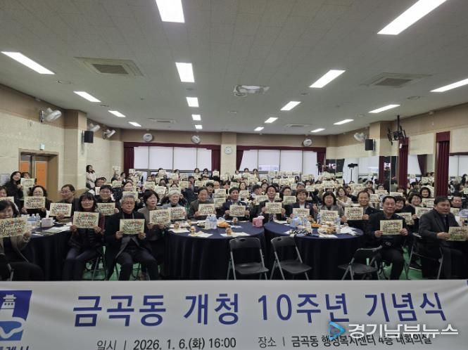[경기남부뉴스 김정옥 기자] 2026년 개청 10주년을 맞은 권선구 금곡동은 지난 6일 지역구 의원과 주민 등 100여 명이 참석한 가운데 주민자치회 및 통장협의회와 함께 10주년 기념행사를 개최했다.