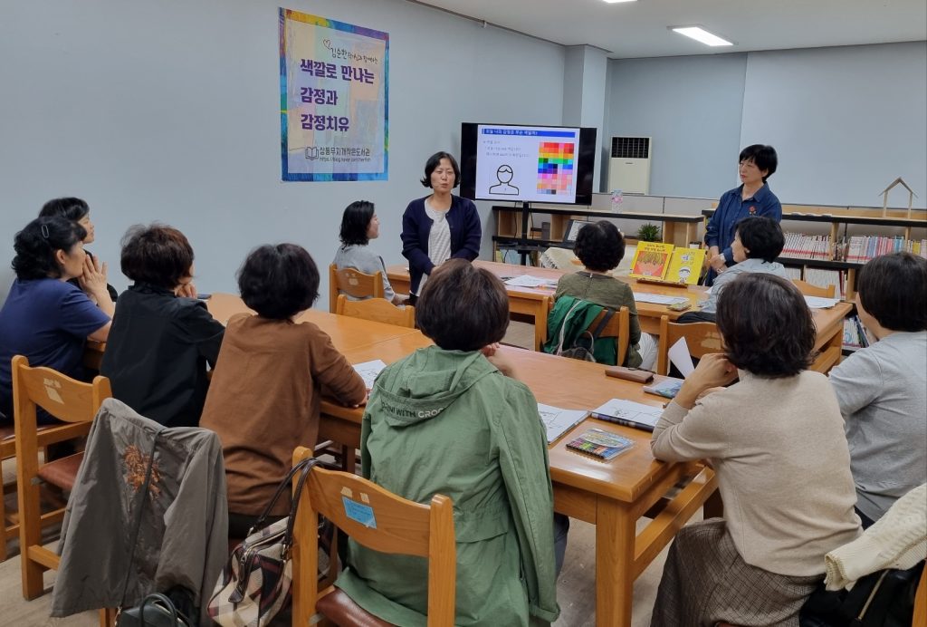 상동무지개도서관에서 11일 김순환 작가를 초청해 중년 여성들을 위한 어린이책 글작가와 함께 하는 색깔로 만나는 감정과 감정 치유 요즘 나의 감정은 무슨 색일까? 라는 주제로 교육나눔 활동을 진행했다.