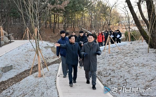 [경기남부뉴스 홍복순 기자] 의정부시는 2026년 병오년 새해를 맞아 1월 8일 녹지 인프라 확충을 위한 주요 사업 대상지를 현장 점검했다. 점검 대상지는 ▲장암동 실외정원 ▲용현산업단지 완충녹지 산책로 및 가로숲길 조성 사업지 ▲민락동 감성쉼터 등이다. 이번 점검은 도심 속 쉼터와 실외정원 확충, 안전한 보행환경 조성, 산림 명소 발굴 등 녹지 인프라 조성 사업의 추진 현황을 점검하고, 시민들이 일상에서 녹지 공간을 보다 쉽게 이용할 수 있도록 추진 중인 ‘도시숲 프로젝트’의 사업 방향과 현장 여건을 확인하기 위해 진행됐다.