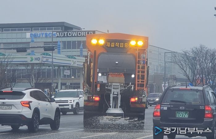 [경기남부뉴스 김정옥 기자] 수원시가 10일 선제적으로 제설제를 살포해 블랙아이스(도로결빙)에 대비했다.