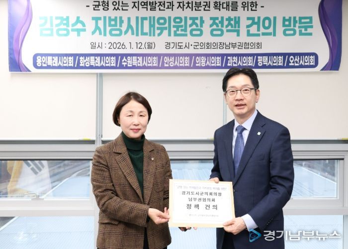 [경기남부뉴스 김혜숙 기자] 경기도시·군의회의장남부권협의회는 12일 세종특별자치시 지방시대위원회 대회의실에서 김경수 지방시대위원회 위원장과 면담을 갖고, 지방의회 인사권 독립 이후에도 조직‧예산 편성권과 자체 조사‧감사 권한이 여전히 집행부에 구조적으로 종속돼 있는 현실을 공유하며, 이러한 제도적 한계에 따른 입법 미비를 보완하기 위한 정책 개선 방안을 공식 건의했다.