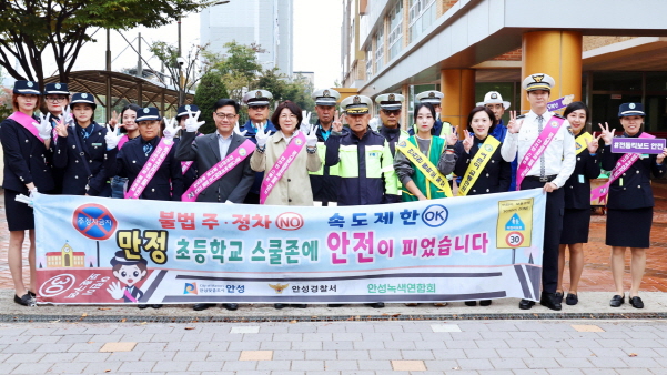 안성시는 어린이보호구역 내 교통사고를 예방하고 안전한 교통문화를 조성하기 위해 19일 만정초등학교 앞에서 안성시청, 안성경찰서, 안성녹색어머니회, 안성모범운전자회, 만정초등학교 등 각 기관 관계자들과 함께 어린이보호구역 교통안전 합동 캠페인을 진행하였다.
