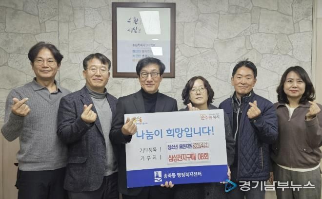 [경기남부뉴스 김정옥 기자] 수원시 장안구 송죽동은 지난 15일 삼성전자 구매OB회와 함께하는 ‘청소년 용돈지원사업’ 후원금 전달식을 개최했다고 밝혔다.