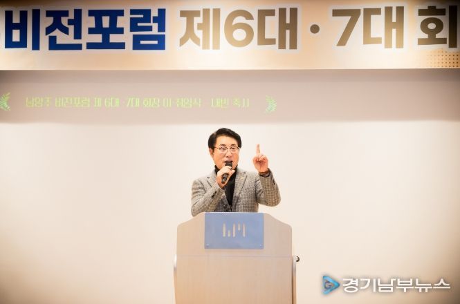 [경기남부뉴스 김혜숙 기자] 조성대 남양주시의회 의장은 20일 금곡양정행정복지센터 6층 공연장에서 열린 남양주비전포럼 회장 이‧취임식에 참석해 관계자들에게 축하의 인사를 전하고 남양주 발전을 저해하는 중첩규제 폐지를 위한 노력에 동참해 줄 것을 당부했다.