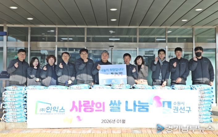 [경기남부뉴스 김정옥 기자] 수원시 권선구는 21일 ㈜인익스에서 설 명절을 맞이하여 후원한 백미(10kg) 100포에 대한 전달식을 진행했다.