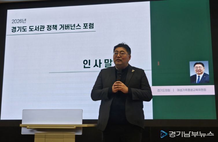 [경기남부뉴스 김혜숙 기자] 경기도의회 여성가족평생교육위원회 김진명 의원(더불어민주당, 성남6)이 21일 경기도서관 플래닛홀에서 열린 ‘2026 경기도 도서관 정책 거버넌스 포럼’에 참석해 경기도 도서관의 미래 비전을 제시하고, 도민 중심의 지식 복지 실현을 위한 정책적 지원을 약속했다.