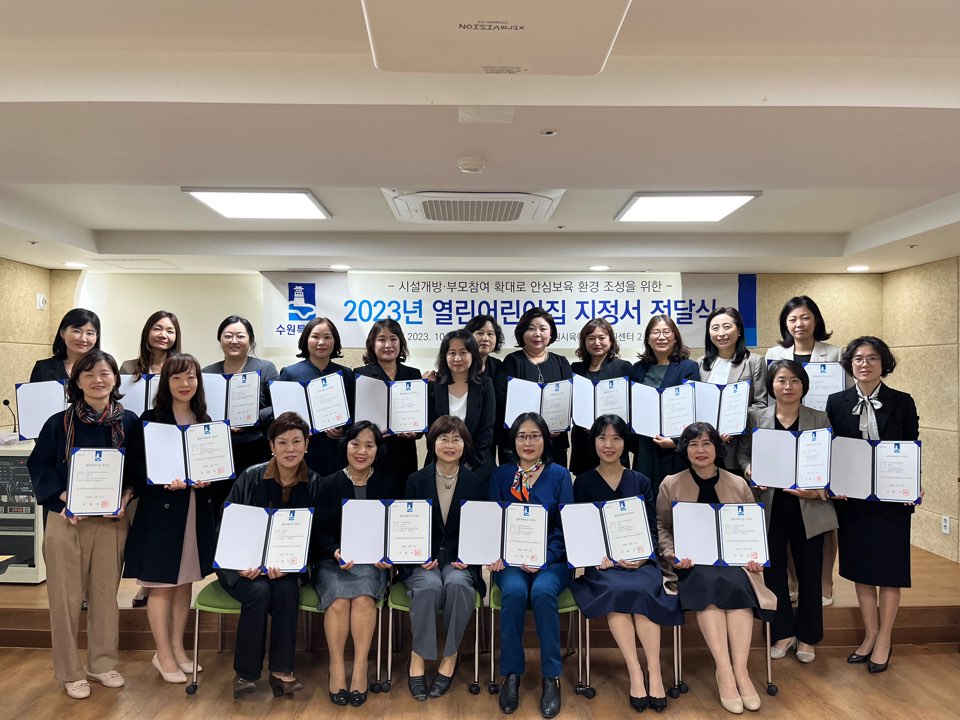 수원시가31일 수원시육아종합지원센터에서‘2023년 수원시 열린어린이집’ 155개(신규51,재선정64)개소와 신규 선정된 어린이집 21개소에 지정서를 전달했다.