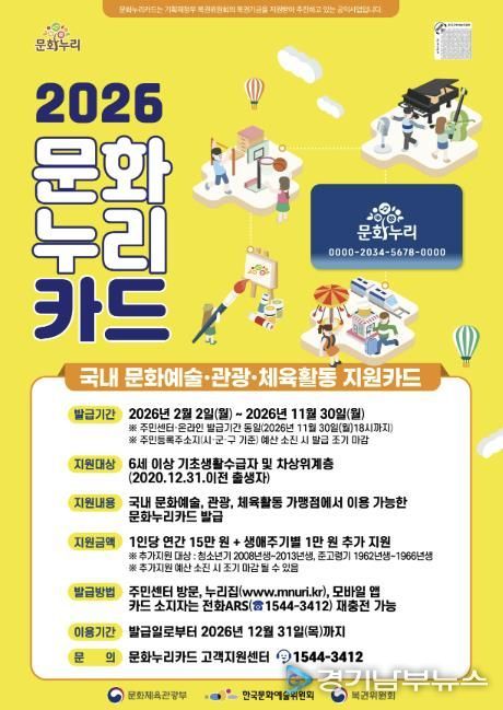 시는 경제적 여건으로 문화생활을 즐기기 어려운 6세 이상 기초생활수급자와 차상위계층에게 15만 원의 통합문화이용권(문화누리카드)을 지원한다고 28일 밝혔다.